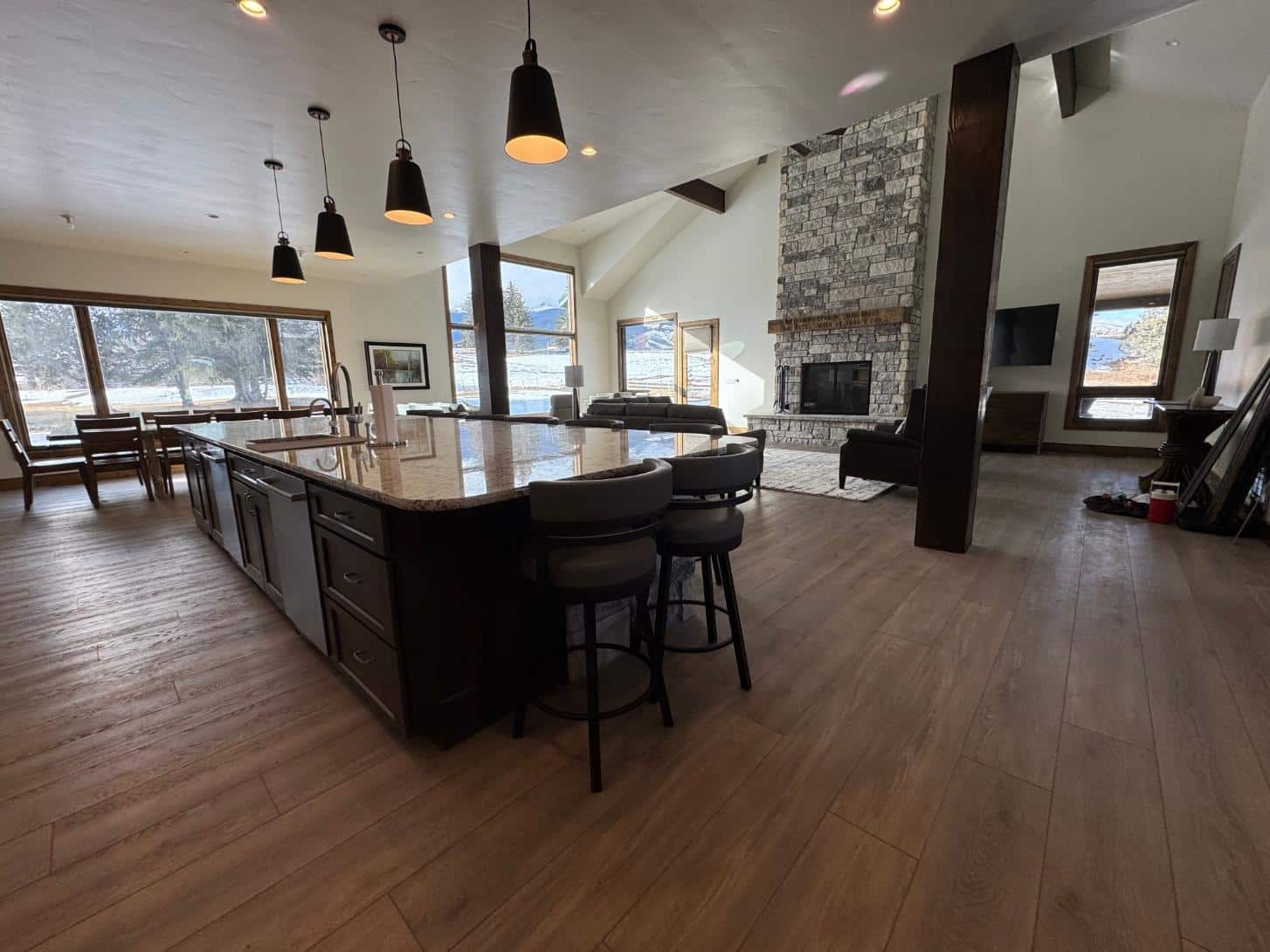 In 2023, nestled in the Wet Mountain Valley of Colorado, JDH Construction completed a stunning custom home that perfectly embodies the timeless elegance of traditional farmhouse design. This exquisite build features a charming wrap-around porch, an inviting open floor plan, a spacious kitchen, and a grand stone fireplace. The rustic wood details and exposed beams adds a warm, welcoming touch, making anyone who steps inside feel instantly at home.